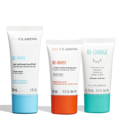 Découvrez les trois indispensables My Clarins formulés à base d’extraits de fruits et de plantes pour hydrater la peau, recharger les batteries et éliminer visiblement les impuretés et l’excès de sébum à l’origine des imperfections.